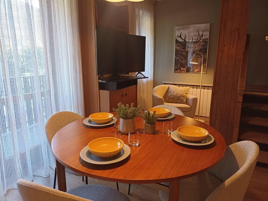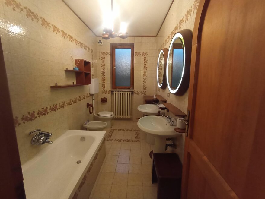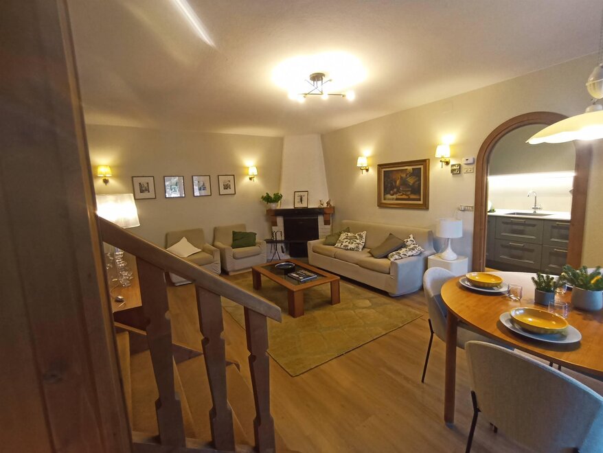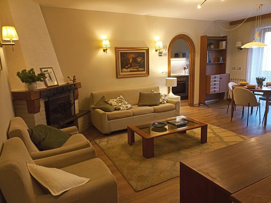 Ampio appartamento di 140 m² disposto su piano terra, primo piano e secondo piano, nel cuore di Ziano di Fiemme, in una posizione ideale vicino al centro ma al tempo stesso tranquilla e a contatto con la natura. Situato in una piccola palazzina con ingresso indipendente, l’alloggio si apre su una cucina attrezzata e un grande soggiorno luminoso, due camere matrimoniali, una camera singola con letto a una piazza e mezza, un bagno con doccia e un bagno con vasca. Vi sono inoltre una lavanderia, una dispensa e un locale deposito per l’attrezzatura.