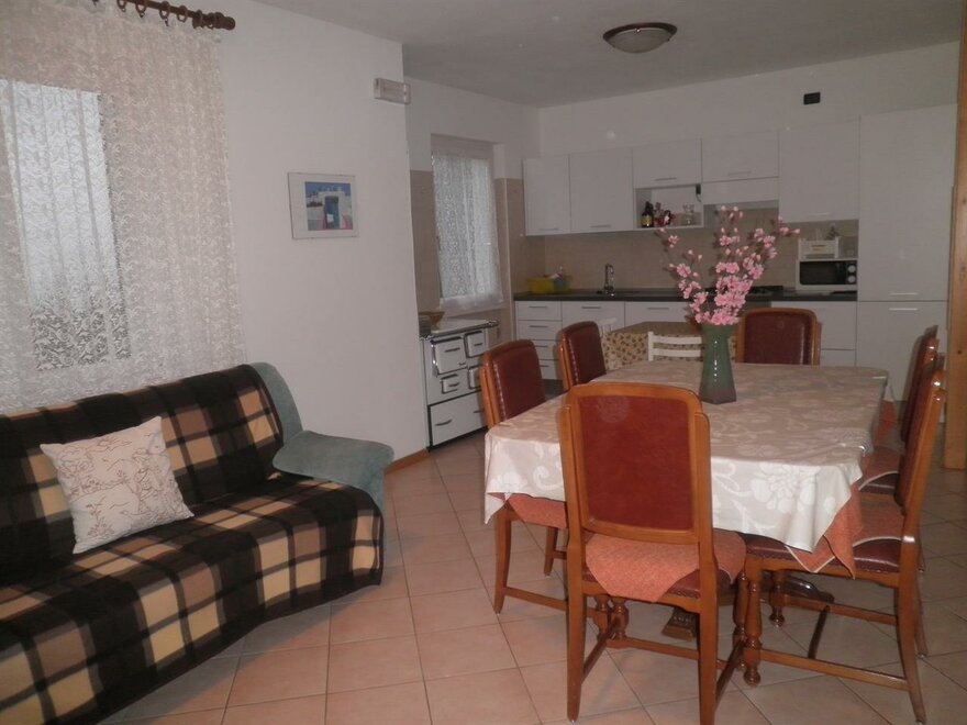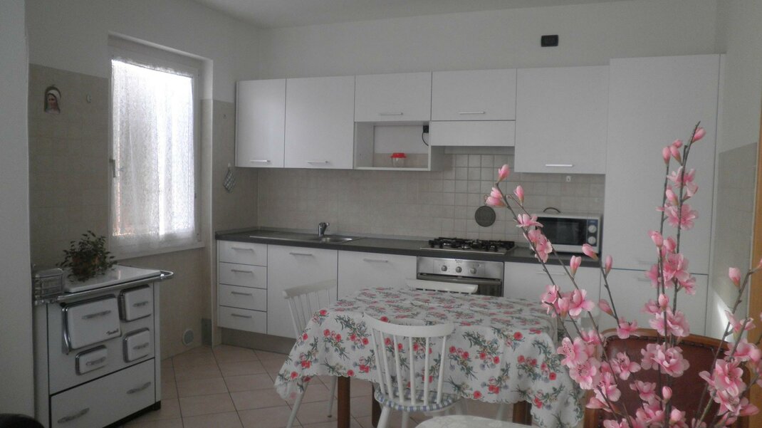 L'appartamento è dotato di lavatrice, lavastoviglie, forno, congelatore in cantina, aspirapolvereferro e asse da stiro in comune, televisore, riscaldamento a pagamento, stufa a legna, pannelli solari, phon, piumoni da letto, giochi per bambini in giardino e, a richiesta, lettino, seggiolone, bicicletta e passeggiano per i bimbi.