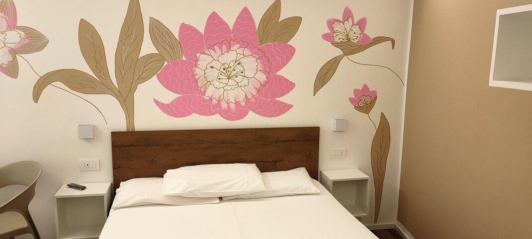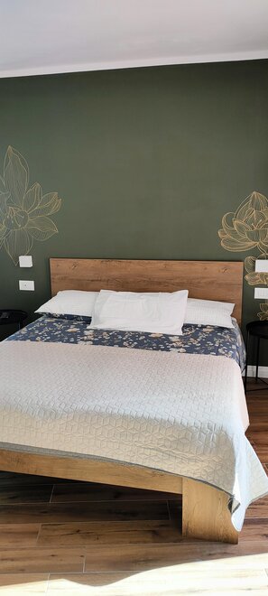 Camera composta da letto matrimoniale e bagno privato. La camera è completa di aria condizionata, riscaldamento, colazione servita nella hall dalla famiglia, televisore LCD,, cassaforte, bollitore con tisane e the, frigo bar, phone e lenzuola, piumoni e corredo bagno.
