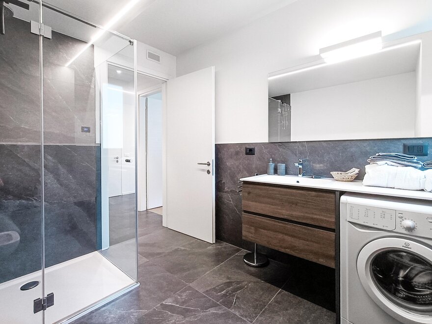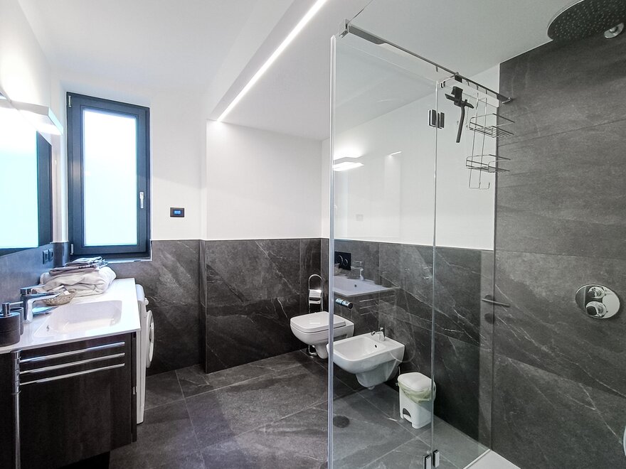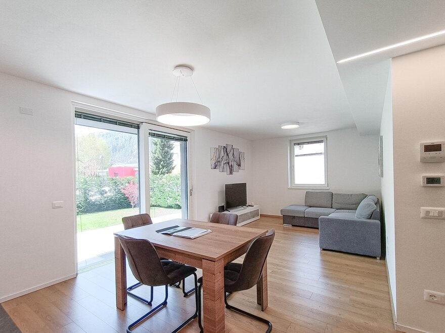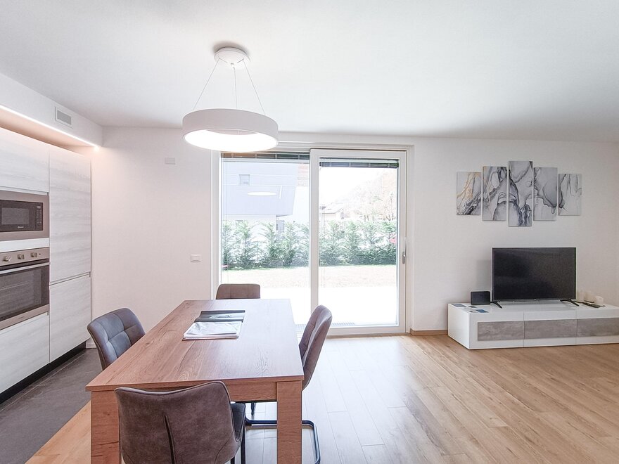 La zona è isolata e tranquilla e la casa è circondata da giardini/prati sui tre lati. L'edificio, di nuovissima realizzazione (estate 2022) è una classi A+ garantendo il massimo comfort ambientale. L'arrendo moderno si accosta a materiali lignei e rocciosi e risce a da una sensazione di ordine, calore e ospitalità
