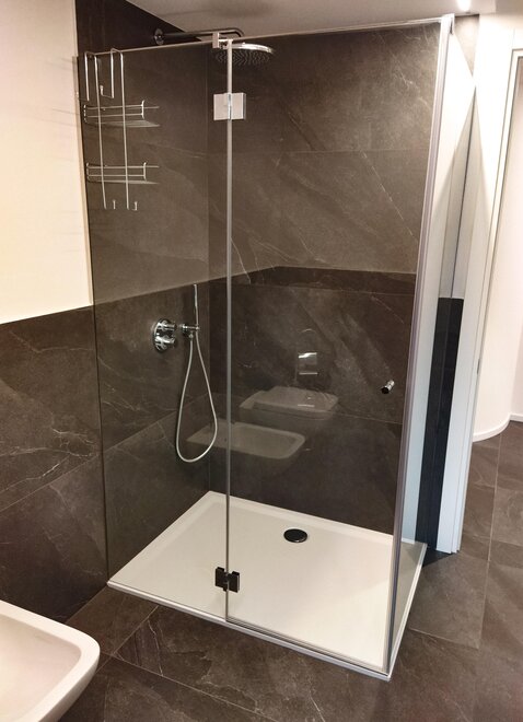 non sono presenti scale o gradini per entrare, doccia a filo pavimento, ampio spazio in doccia e bagno