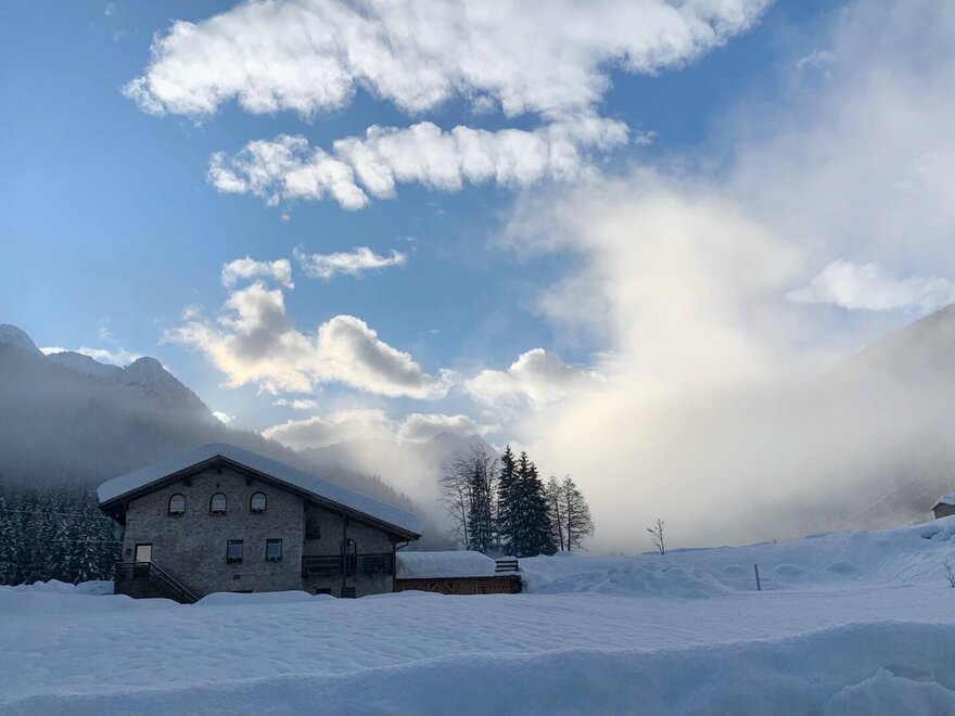 Meravigliosa baita di montagna, ideale per gruppi di famiglie e ragazzi situata in località Velon di Vermiglio in Trentino, un angolo di paradiso accessibile con comoda strada asfaltata in ogni periodo dell'anno.