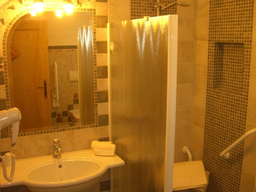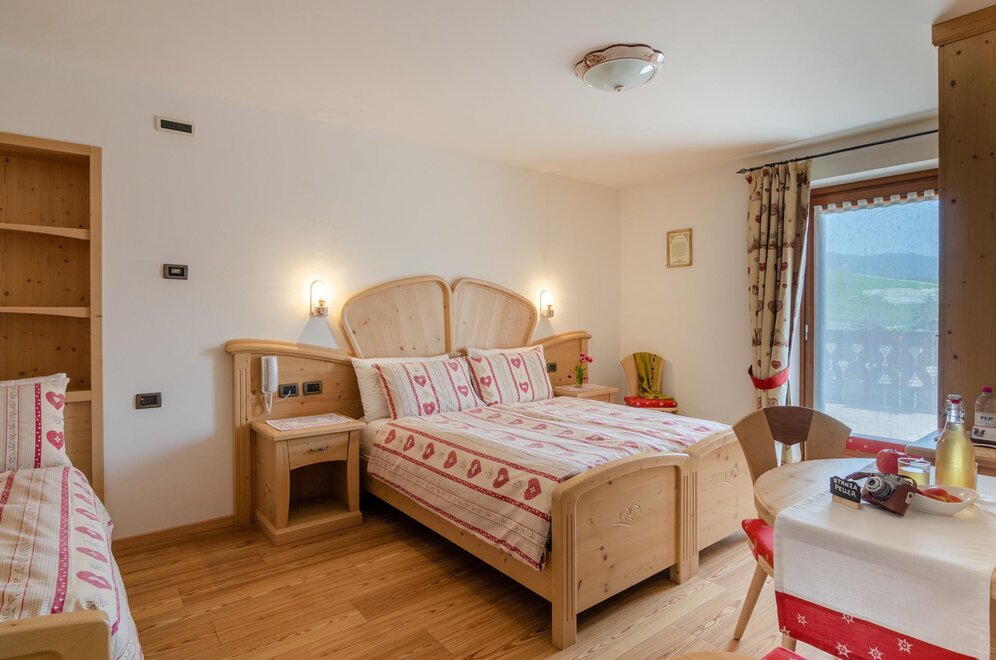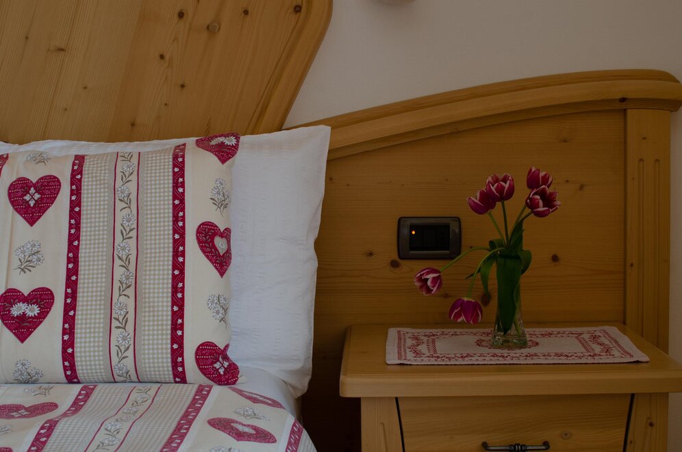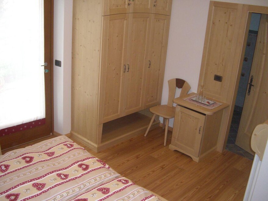 La camera "Roen" è una spaziosa camera matrimoniale arredata con legno di larice e abete. Dotazione della camera: comodo accesso sull'esterno, ingresso autonomo, biancheria da letto e bagno, dotata di cassaforte, minibar e mobiletto con bicchieri e pensiero di benvenuto e bollitore per il tè. Generoso il bagno privo di barriere architettoniche, con doccia con seduta, set di cortesia con gel igienizzante e dotato di asciugacapelli e stendibiancheria. Nel bagno non troverai il bidet.