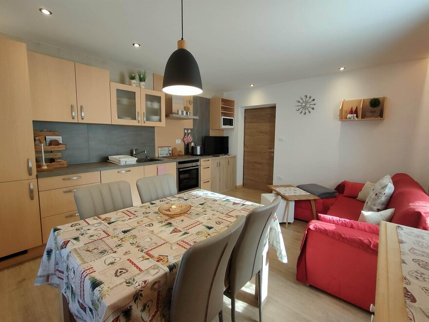 Appartamento a Pozza di Fassa, vicinissimo al centro ma in zona tranquilla. Composto da cucina-soggiorno dotata di frigo-freezer, lavastoviglie, forno, piastra elettrica, tostapane, ebollitore, forno microonde, stoviglie e posate, tv, divano letto.Camera matrimoniale, con possibilità di terzo letto, tv. Bagno con doccia e lavatrice. Biancheria da letto e bagno disponibile su richiesta e a pagamento.