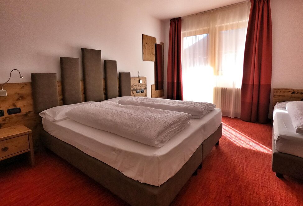Le stanze da letto sono state tutte completamente rinnovate: ariose e luminose, sobrie ed accoglienti, arredate con cura e ricercatezza dei particolari. Tutte le camere, raggiungibili in ascensore, sono dotate di servizi indispensabili come asciugacapelli, telefono con allacciamento diretto verso l’esterno, cassetta di sicurezza elettronica, televisore con collegamento satellitare, moderne serrature elettroniche, accesso ad internet wireless Wi-Fi e la maggior parte è provvista di un balcone privato con spettacolari vedute sulle Dolomiti. L’albergo è circondato dalla natura e la vista è assicurata per ogni alloggio.