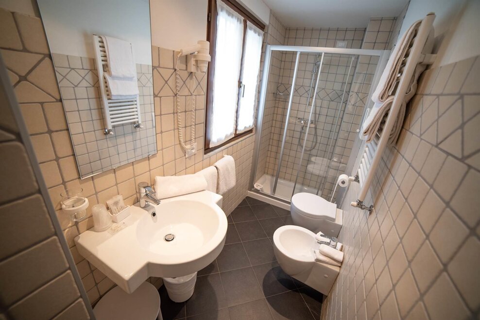 kit cortesia, acqua corrente c/f, WC, bidet, lavabo, doccia, WC
