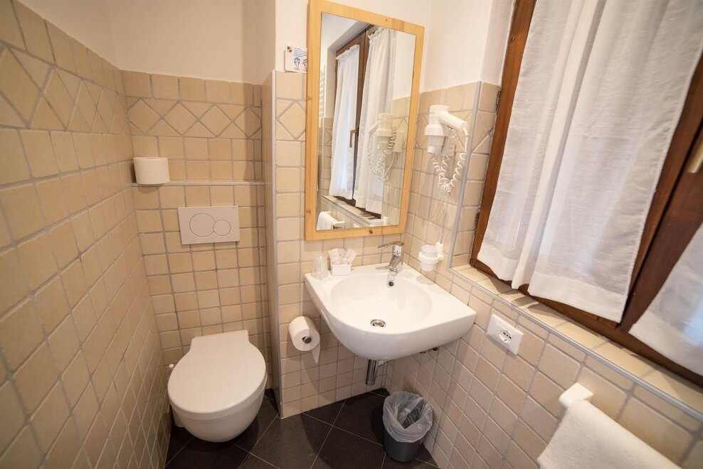 Tutte le camere sono con bagno/doccia recentemente rinnovati, dotate di telefono tv digitale, wifi e alcune con balcone. Le stanze in mansarda rinnovate da poco.