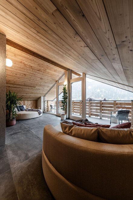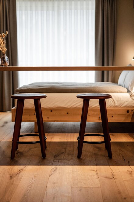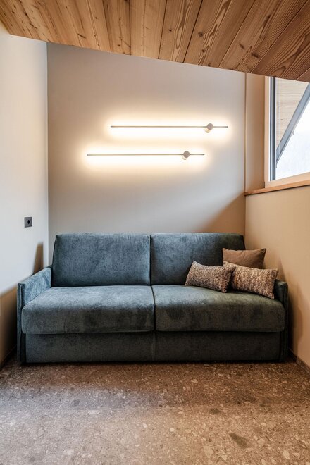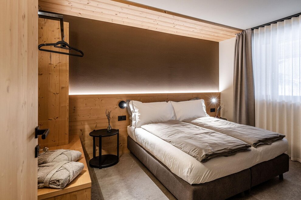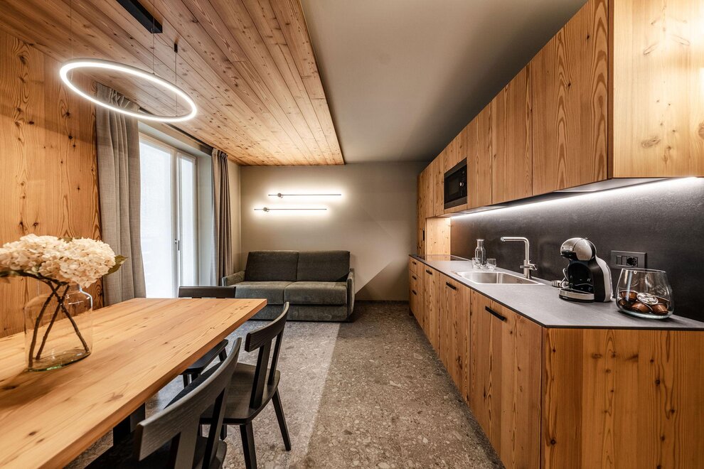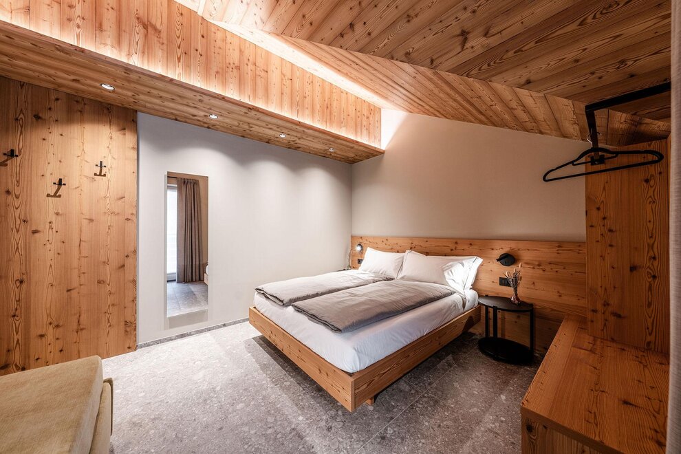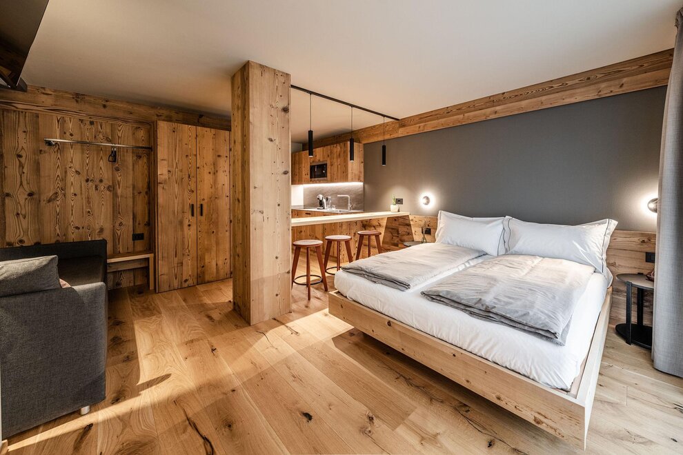 Sono gli appartamenti Prime El Giof Alpine Home: ambienti intimi e ricercati, pensati per coppie o viaggiatori solitari in cerca di relax, silenzio e benessere.Realizzati con legno antico, finiture di pregio e materiali naturali, ogni dettaglio racconta il calore dell’accoglienza alpina.