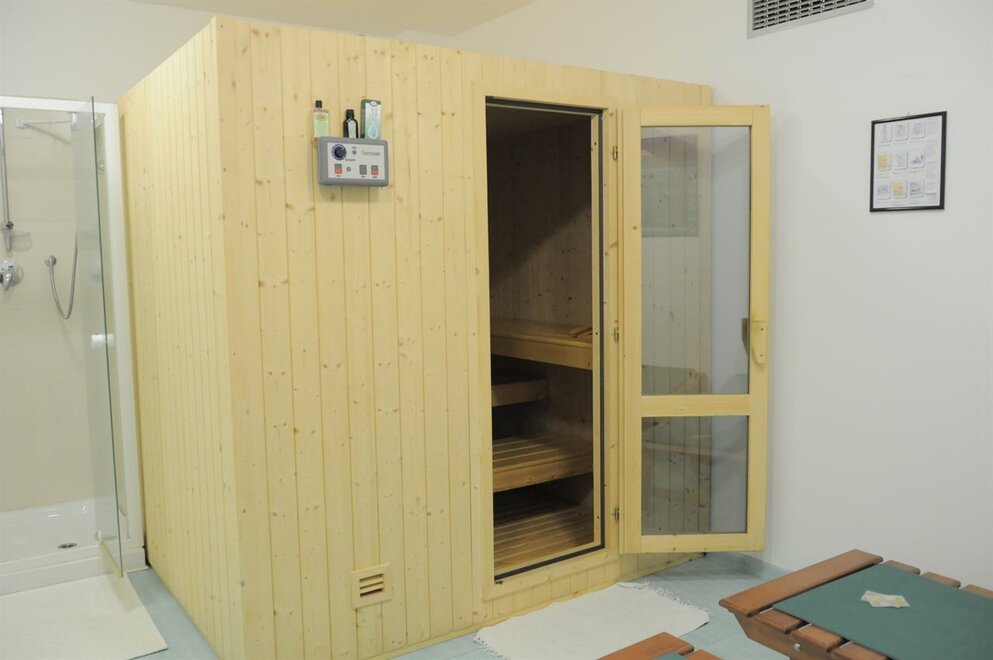 Area wellness con sauna finlandese e palestra.