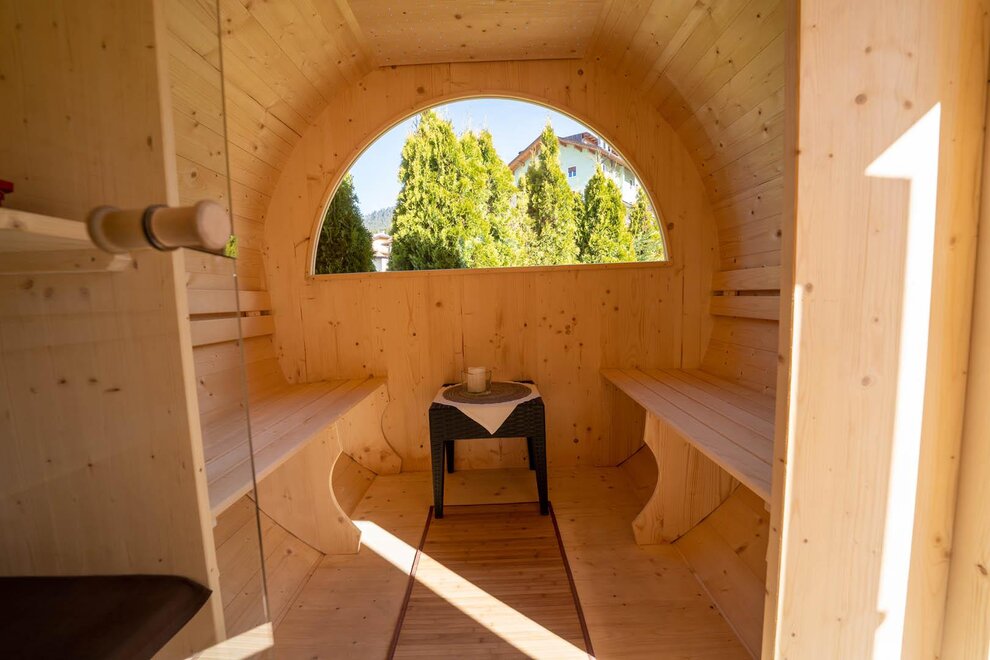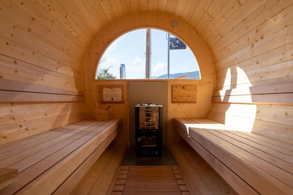 - libero accesso all’area wellness: piscina interna riscaldata, sauna finlandese nella botte esterna, idromassaggio esterno bagno turco, area relax) durante tutto il soggiorno