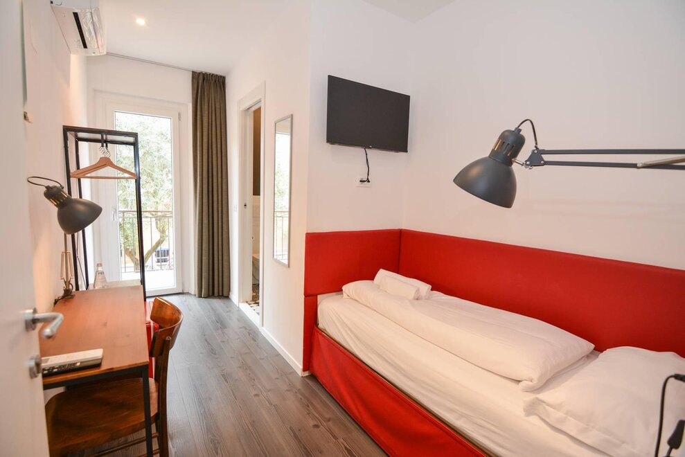 Poche centinaia di metri ci separano dalle più belle spiagge di Riva del Garda, e il grazioso centro storico è a circa un chilometro di passeggiata lungo lago. Anche sentieri e percorsi ciclabili sono a portata di mano, così da poter godere appieno di quella palestra a cielo aperto che è il Garda Trentino, tra trekking, mountain bike, arrampicata, vela, windsurf, ferrate, canyoning e tante altre attività che renderanno memorabile la tua vacanza. Siamo vicini anche a ristoranti, supermercati, negozi, ATM e farmacie nelle vicinanze.