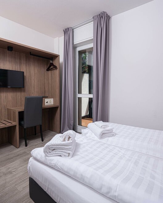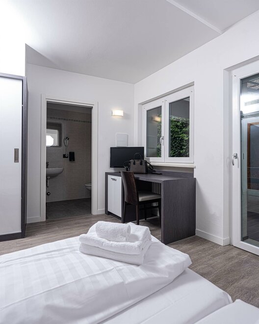 WiFi, riscaldamento centralizzato, asciugamani compresi, climatizzatore, balcone, wi-fi gratis, armadio, telefono, scrivania, TV, possib. collegamento internet, asciugacapelli, TV-Sat