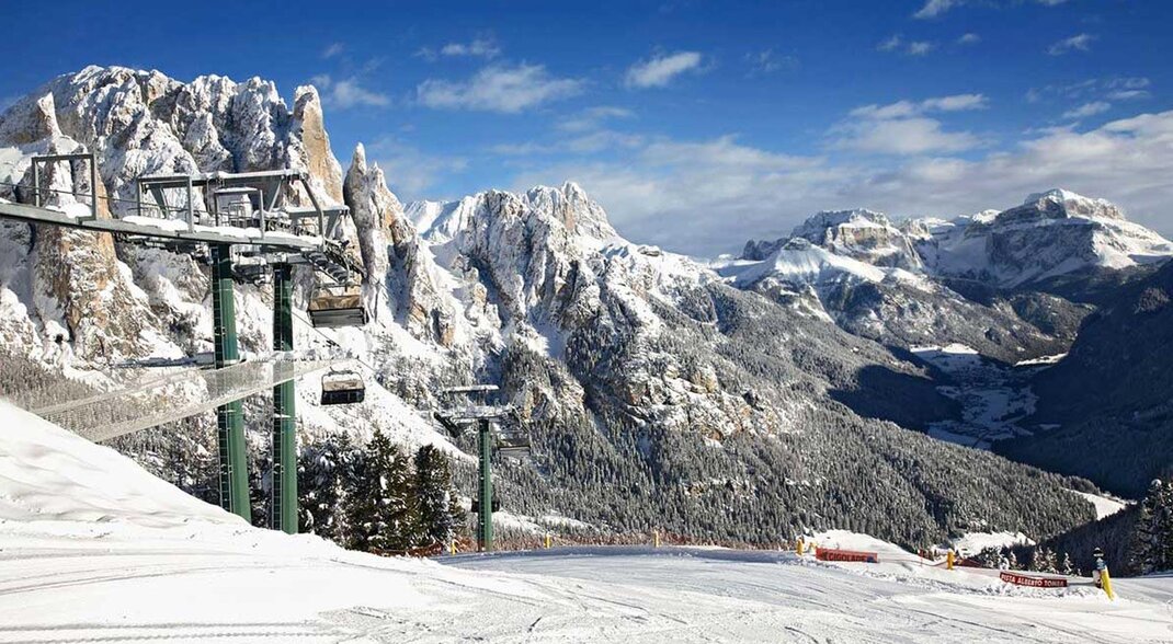 In Inverno, per discese spettacolari sulle piste perfettamente innevate, grazie alla velocità e modernità degli impianti di risalita agevolmente raggiungibili con lo skibus con fermata davanti all'hotel.