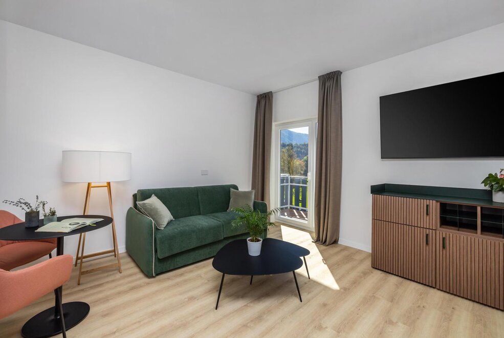 Contraddistinte da uno stile moderno e da un’atmosfera intima, abbracciano la bellezza della natura con pavimenti in legno.Camera con vista sulle montagne o sul nostro parco privato, dispongono di un letto matrimoniale king size, minibar, teli e accappatoi per usufruire di tutte le strutture wellness.