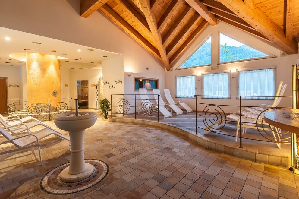 Centro benessere di 700 mq con piscina coperta riscaldata a 31°, giochi d'acqua, thermarium con sauna, bagno turco, sudario romano, percorso kneipp, docce aromatizzate e relax. Particolare la sala "culla del re" per l'aromaterapia. Il Beauty Center completamente rinnovato: massaggi di varie tipologie, trattamenti con campane tibetane, massaggi relax su lettino "Zero", stones terapy, shiatsu, bio-lifting, bagni di fieno.