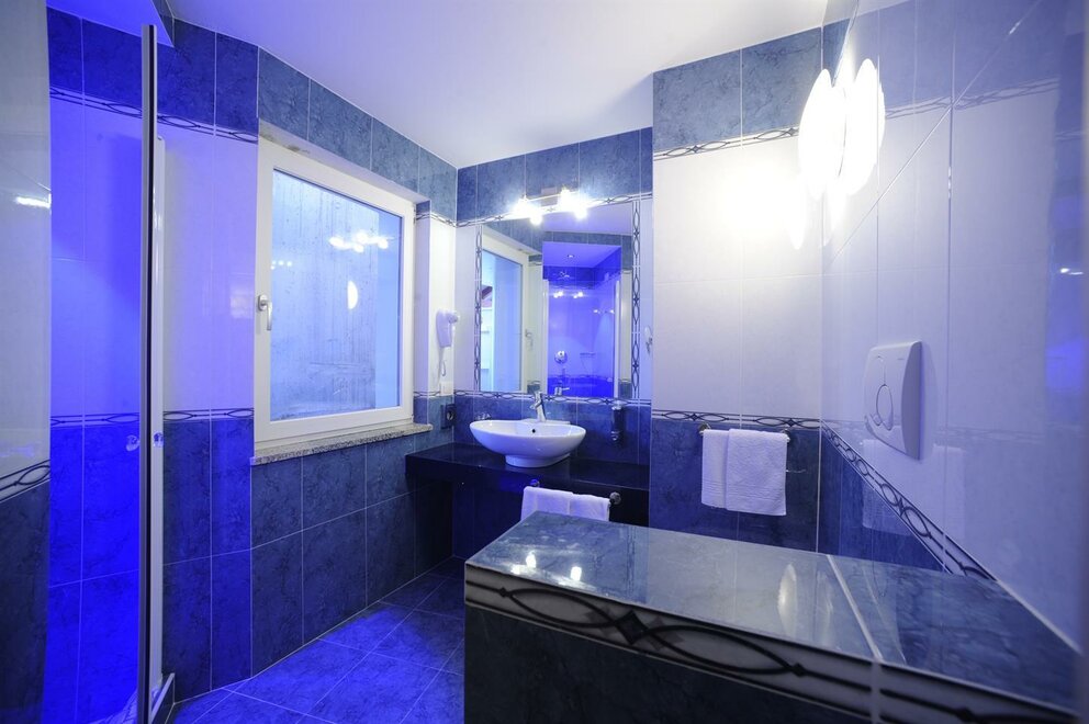 La Family Bicamera Suite “Romantica“ è composta da una Suite Romantica e una camera Comfort, comunicanti. Entrambe di circa 26 mq con ingressi indipendenti, le camere sono collegate da una porta che può essere chiusa a chiave. La suite Romantica è dotata di 1 letto matrimoniale, cabina armadio, 1 tavolino con 2 poltroncine ed una vasca tonda idromassaggio. Il bagno è di circa 5mq con la doccia ed un terrazzino sulla parte laterale dell’hotel.