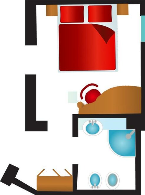 Camera di circa 18 mq, con 1 letto matrimoniale, tv, cassaforte e frigobar, telefono, phon in bagno. La stanza presenta il pavimento in moquette ed arredamento nuovo in legno di abete come da foto. Il bagno è di circa 4 mq e come da normative Ecolabel non presenta set di cortesia ma comodi dispenser di sapone e doccia schiuma. Inoltre tutte le lampadine sono a risparmio energetico. Il balcone è rivolto o verso sud con vista panoramica oppure verso est, con parziale vista panoramica. Wi-fi gratuito.