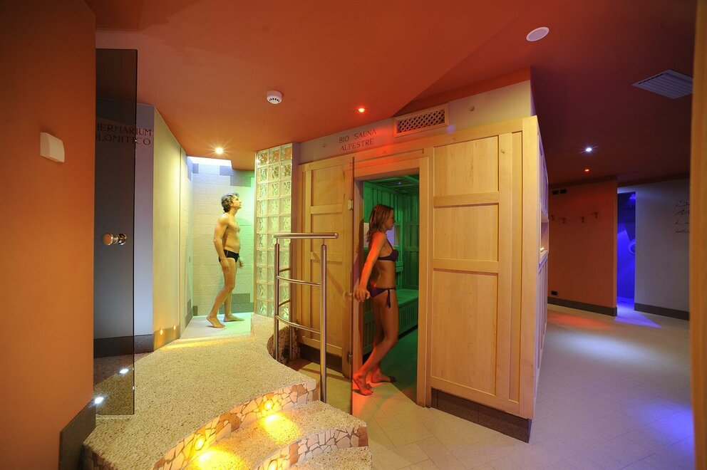 Percorso wellness (Grotta salina in dolomia, Bagno Silvestre a vapore, Thermarium Dolomitico, Paradiso dell’ Acqua, Biosauna Alpestre, Stube relax) € 16,00