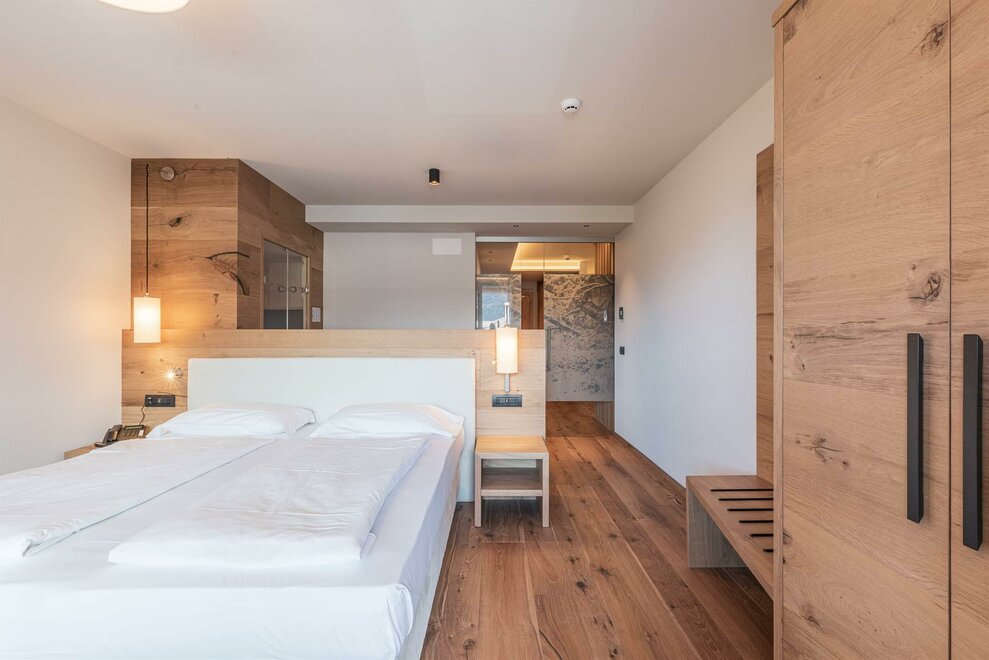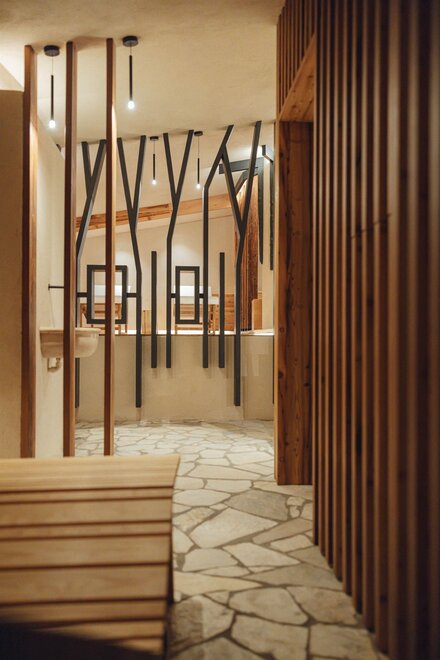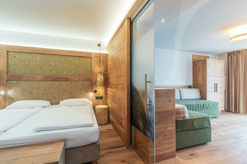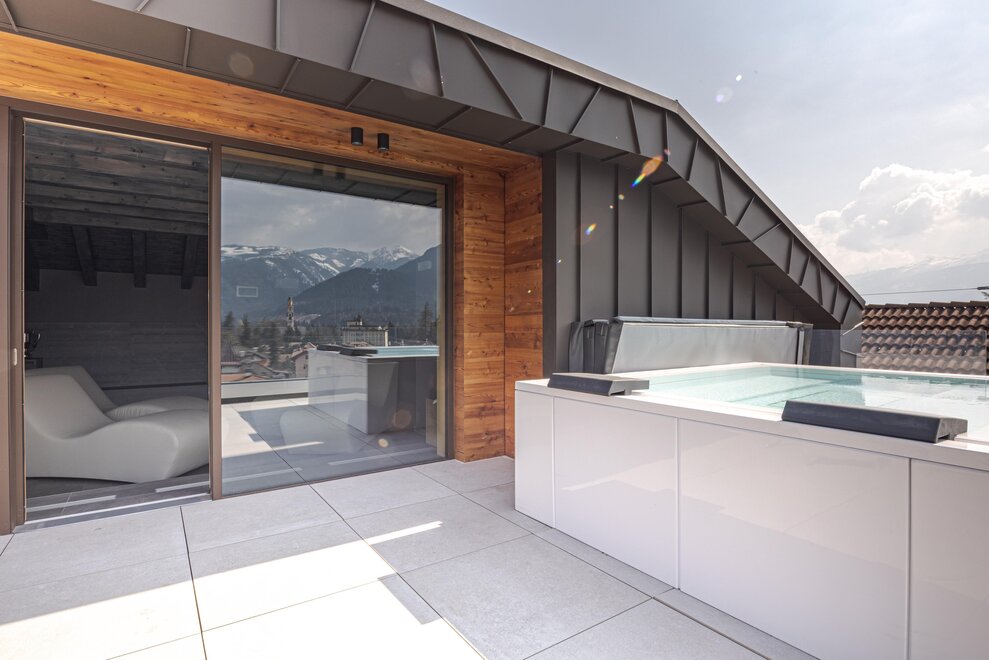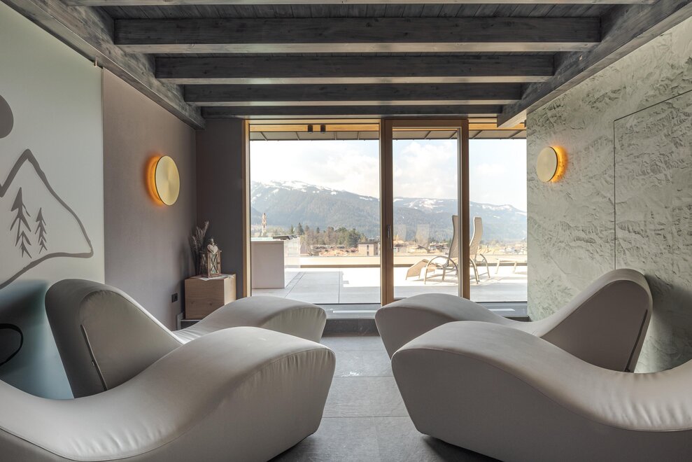 Le nostre Suite SPA Tribu, Mountain Living, 68. Fino 50 mq di assoluto benessere. La coppia romantica, cosi come la famiglia attiva, si meritano indimenticabili momenti di totale relax, nelle nostre Suite con Bio-Saune Hydrosoft e vasca centro stanza. In tutti i dettagli, abbiamo utilizzato materiali pregiati, selezionati e lavorati da artigiani locali. Dagli spaziosi balconi si possono ammirare i colori dei boschi e delle cime della Catena del Lagorai. Tutte le suite sono non fumatori.