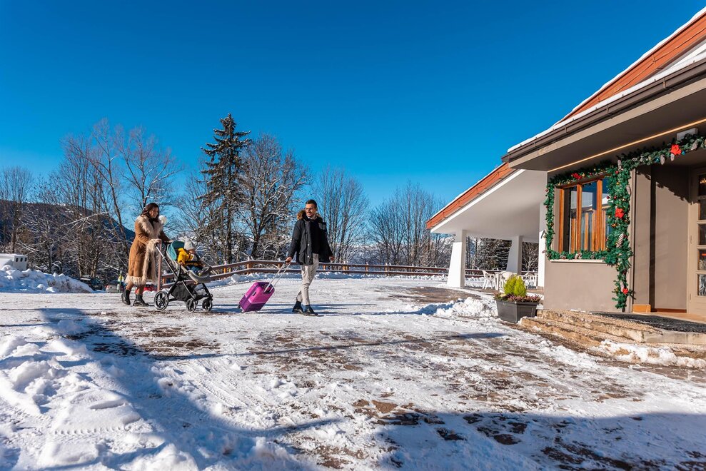 Winter: Conveniently located near the skibus stop, allowing you to reach the ski slopes in just a few minutes.