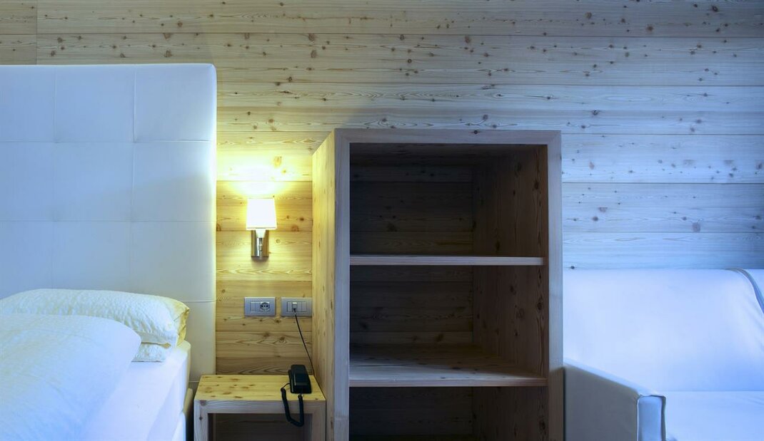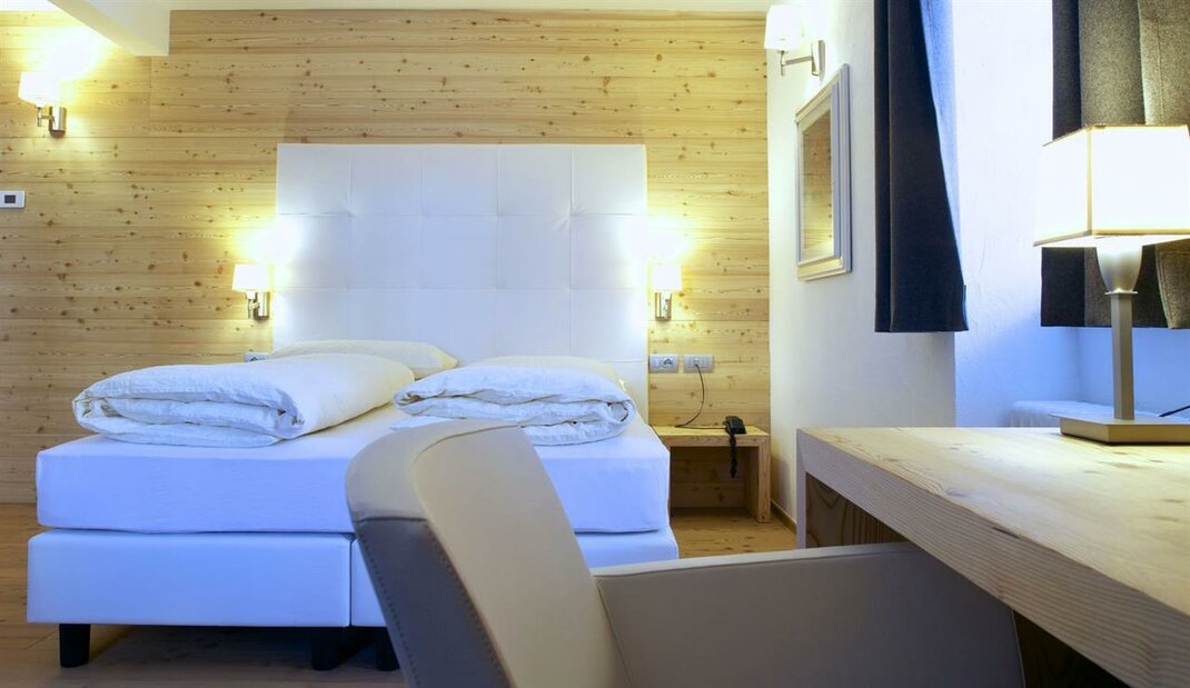 Camera spaziosa ed elegante, ideale per coppie o singoli che scelgono di trascorrere le proprie vacanze sulle Dolomiti. Tutte le stanze sono non fumatori e dotate di bagno con doccia, TV satellitare, telefono, wifi internet e minibar. Su richiesta disponiamo di camere con balcone o terrazza. Specifiche della camera: •n° stanze Superior: 4 camere •metratura: 25,00 - 28,00 mq •Tipologia di stanza: matrimoniale, con possibilità di terzo e quarto letto.