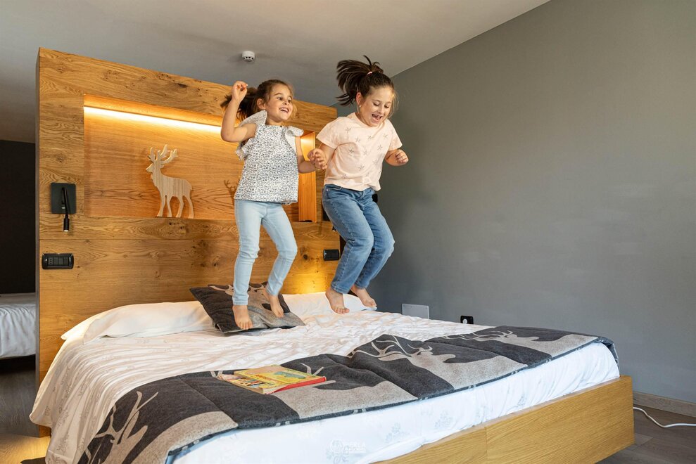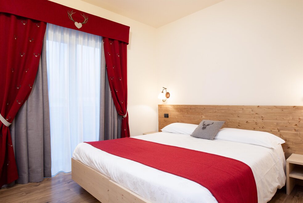 Stanza adatta ad ospitare fino a quattro persone (adulti o in famiglia con bambini), in letto matrimoniale con aggiunta di due letti (o lettini o culle) o in quattro letti separati. Ampia e luminosa, finemente caratterizzata da un arredamento recentemente rinnovato in stile tirolese.