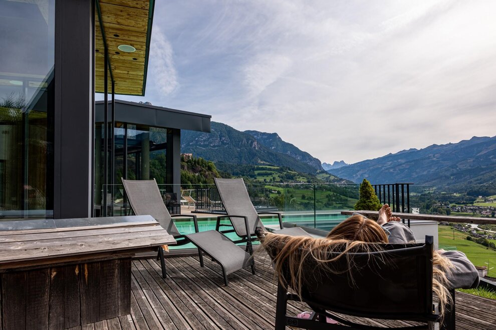 Ampio terrazzo dove godere della magnifica vista sulle Dolomiti e la Catena del Lagorai