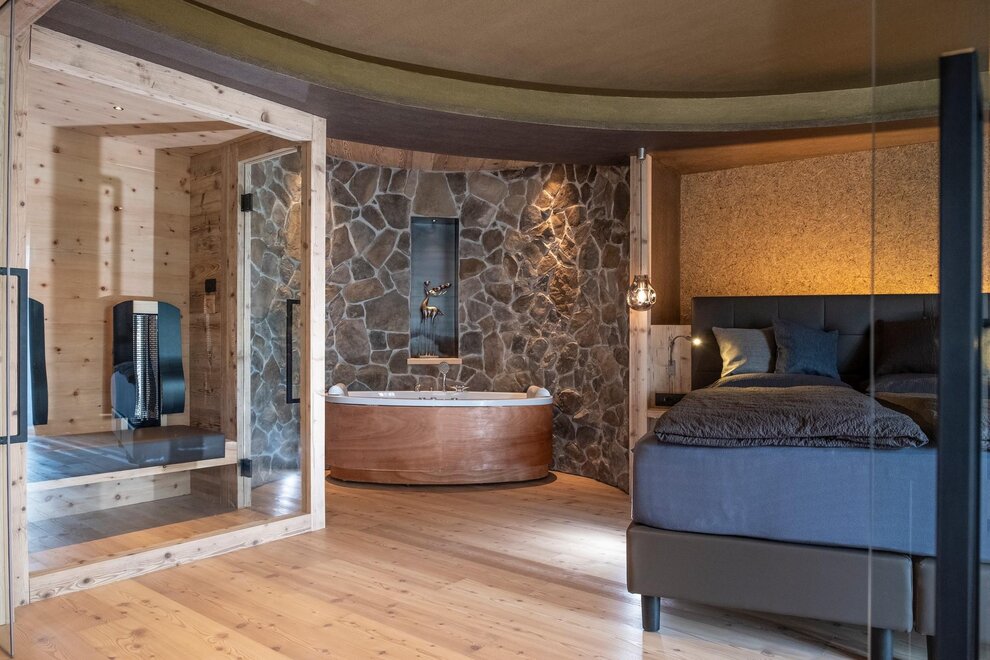 Una splendida sauna infrarossi e la vasca idromassaggio in camera ti permetteranno di abbondonarti ai benefici della Spa in totale privacy e sicurezza.