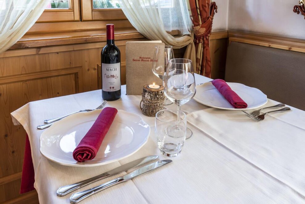 Per il pranzo e la cena, gli opiti dell' Hotel Sasso Rosso potranno scegliere tra tre primi e tre secondi, gli antipasti e le verdure sono disponibili a buffet.