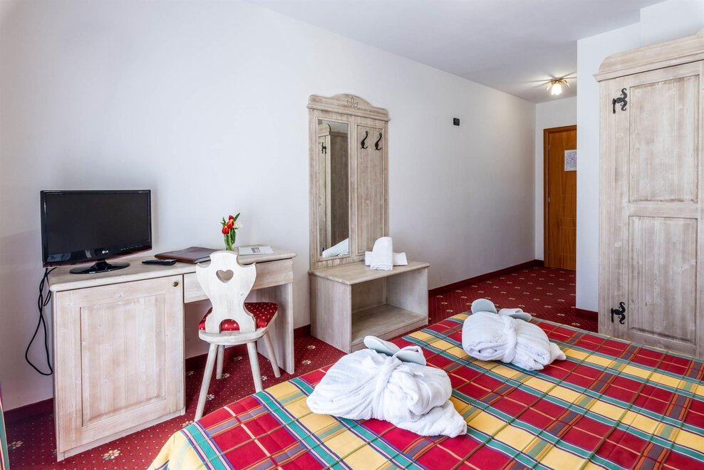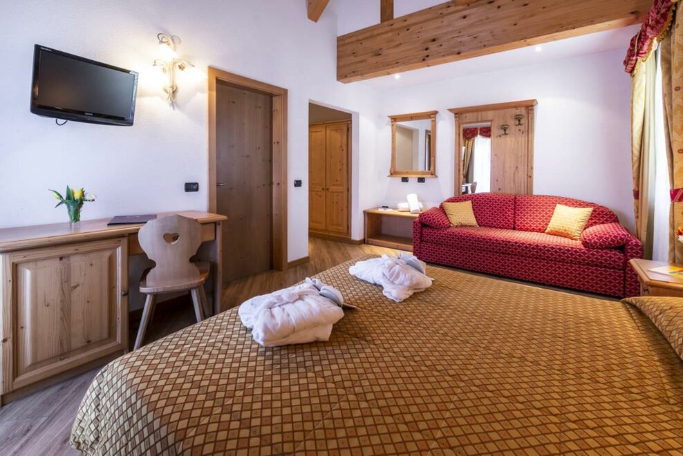 Le Camere Rododendro sono stanze spaziose calde e accoglienti, con arredamento e pavimento in legno di abete naturale in tipico stile alpino. Le camere sono dotate di balcone, Tv color, telefono, cassaforte, asciugacapelli e wifi gratuito.