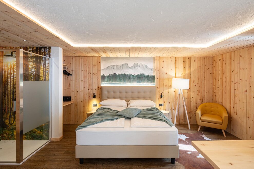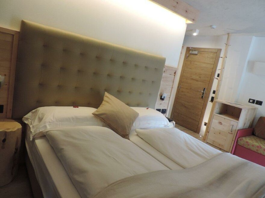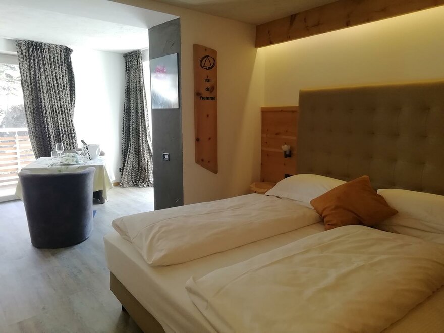 Tutte le camere sono arredate con il legno delle nostre foreste della Val di Fiemme, certificate per qualità e gestione sostenibile, con riscaldamento a pavimento alimentato da caldaia a legna, TV e wi-fi gratuito.