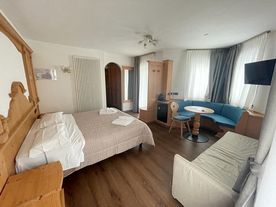Letto Matrimoniale o Letti Separati, tv color satellitare, scrivania, cassaforte, frigobar (da riempire su richiesta) bagno indipendente con doccia o vasca, specchio cosmetico, kit cortesia, asciugacapelli, cambio biancheria ogni 3 giorni