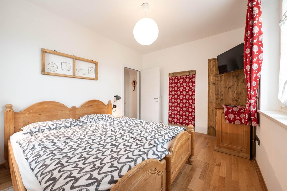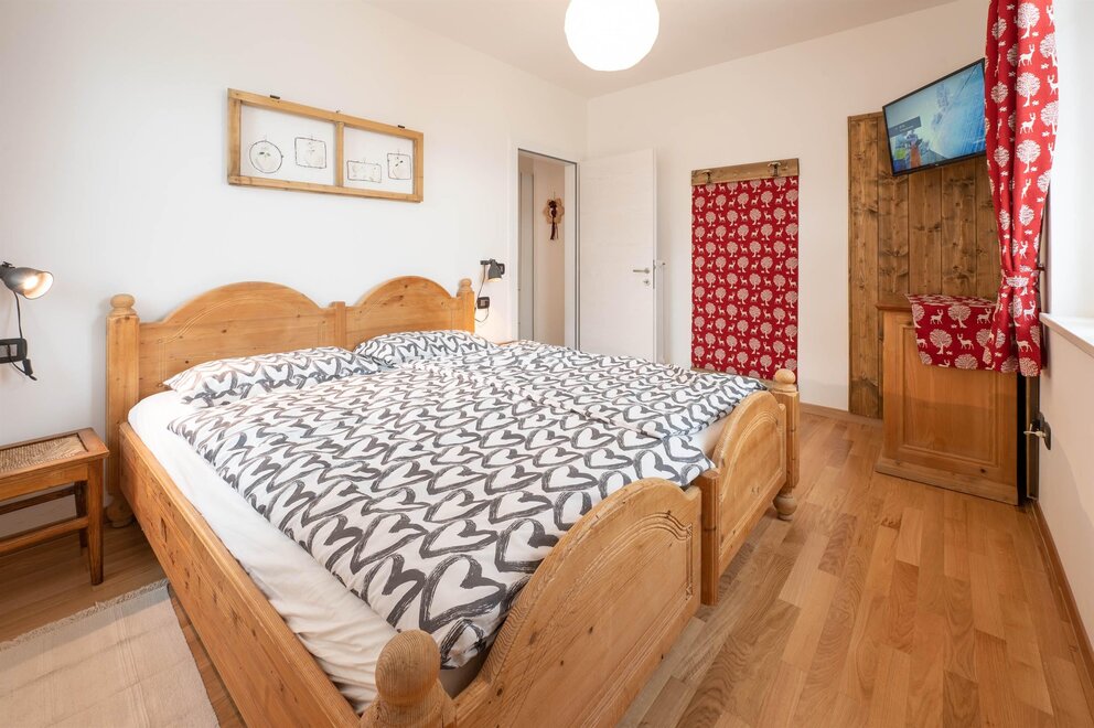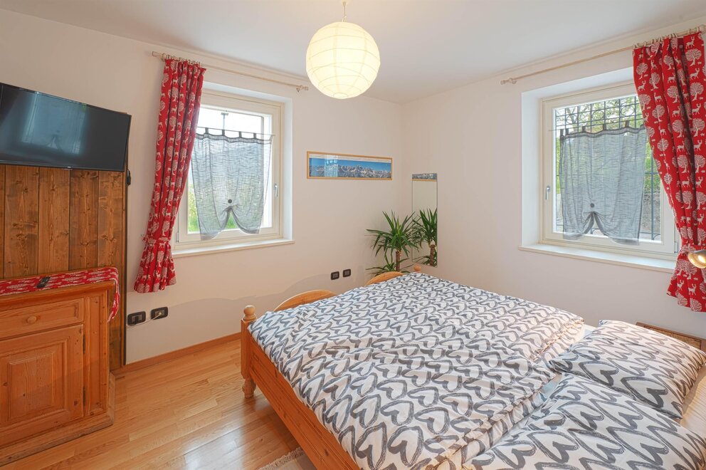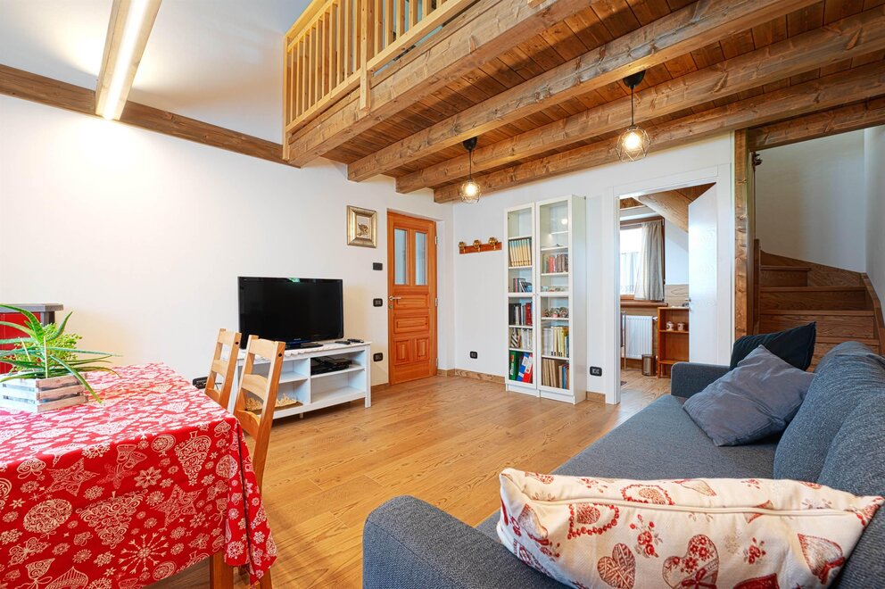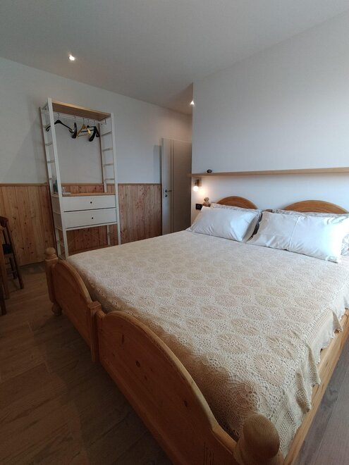La camera Rustica è composta di 4 posti letto in un piccolo appartamentino, con zona giorno attrezzata con divano letto, tv, tavolo con sedie, stufa a pellet di rinforzo per inverni freddissimi, bagno privato finestrato, scala in legno che porta al soppalco con letto matrimoniale e possibilità di lettino aggiuntivo.