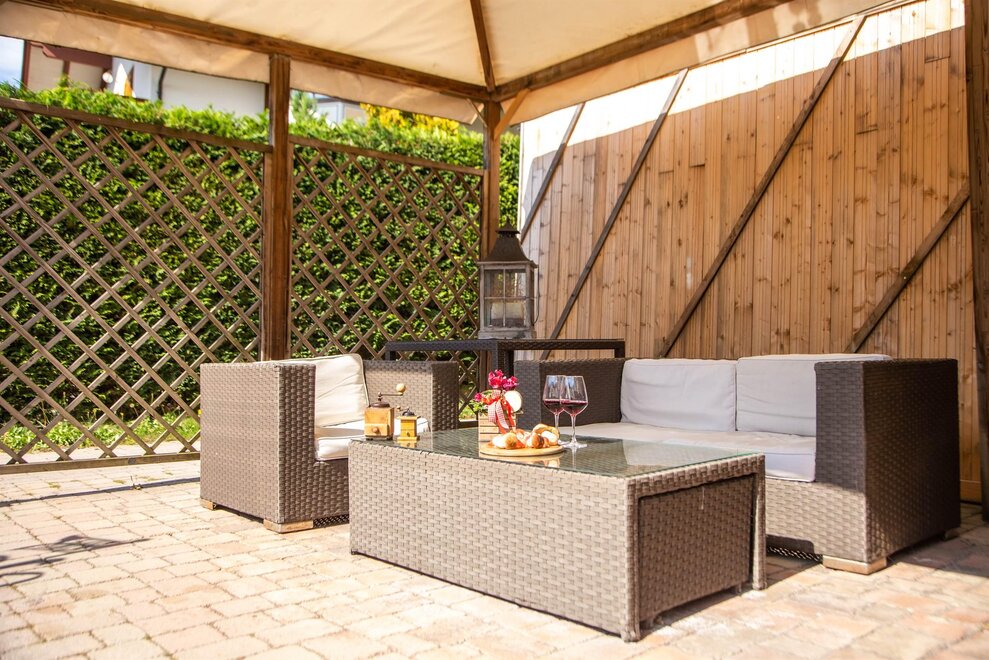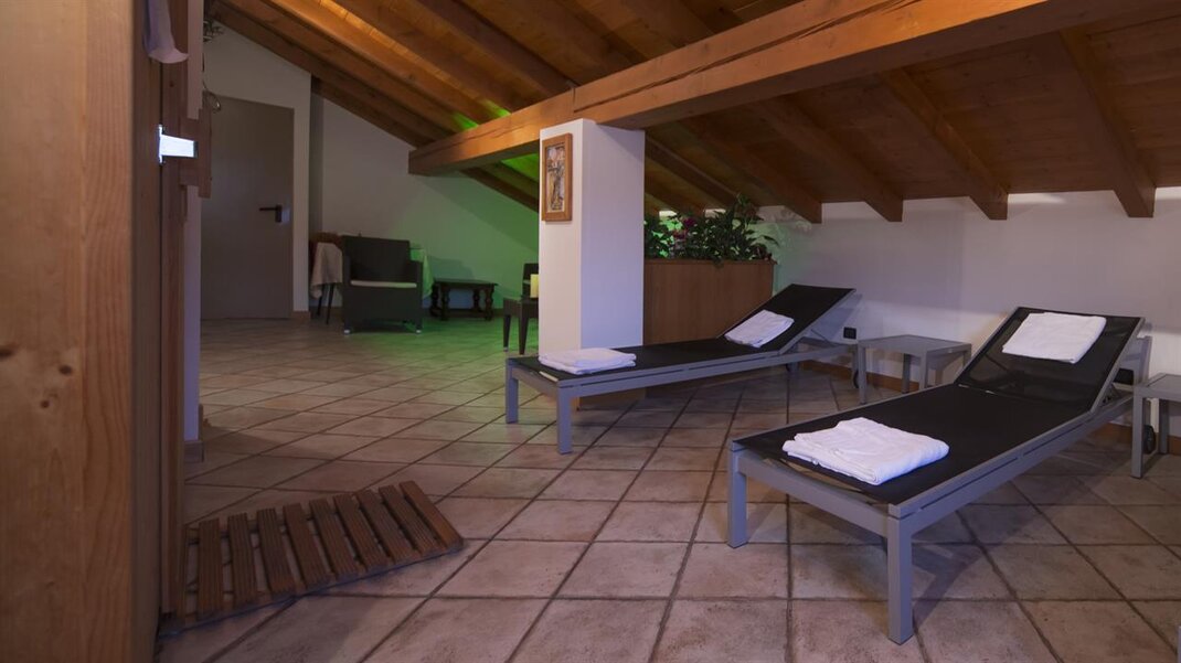 Terrazza solarium, spazio esterno con tavolini e sedie, zona relax con sauna ed attrezzi per il fitness. Parcheggio e wi-fi gratuito.