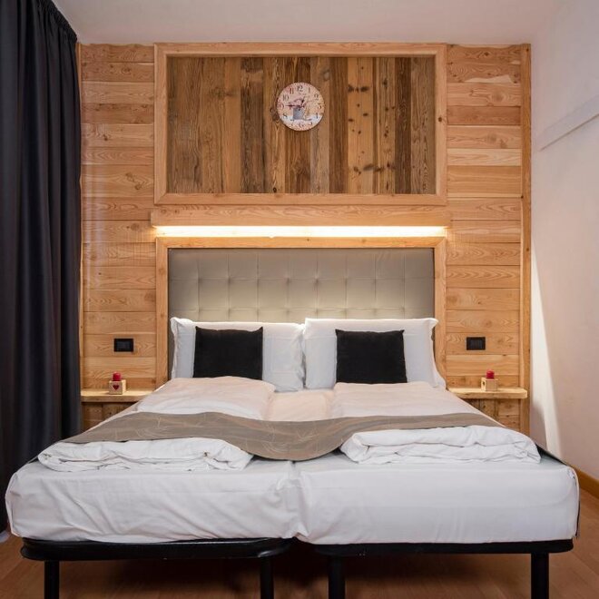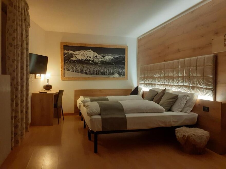 L’hotel è arredato in stile alpino. Dispone di 31 stanze, sia matrimoniali che multiple per famiglie.