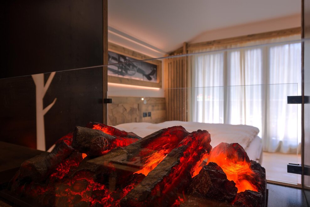 La Junior Suite Quarzo è un vero gioiello di lusso e comfort realizzata nel nuovo stile "Alpine Lifestyle”. Il pavimento in legno, i dettagli di design, il caminetto, TV SAT, set per tisane, il kit wellness con borsa di juta, accappatoio, telo e ciabattine, il doppio lavabo in bagno e il balcone panoramico, ne fanno una delle camere più richieste. Ideale per chi desidera trascorrere un soggiorno da favola in tutta comodità e in un’atmosfera moderna e raffinata.