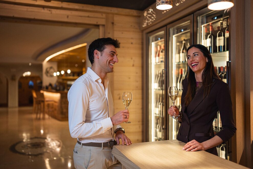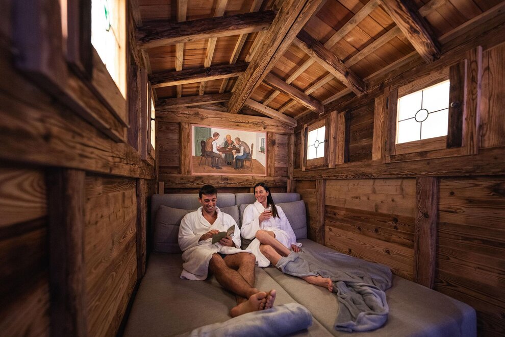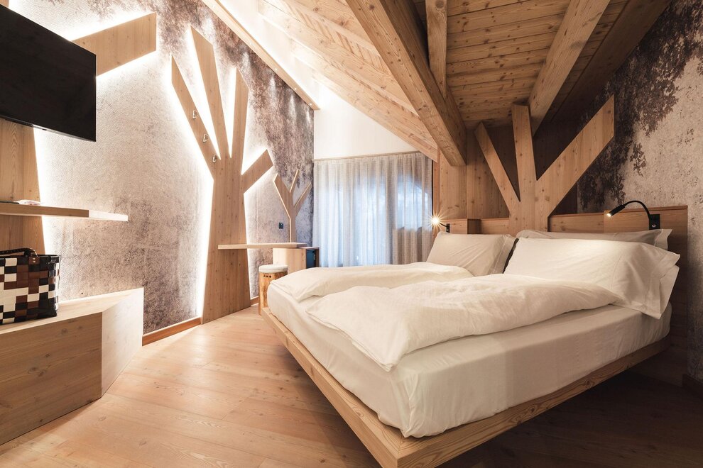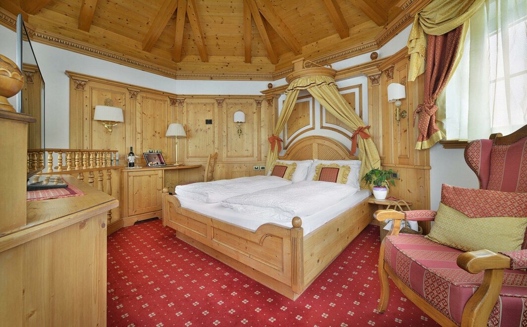 La Junior Suite Rubino nel nuovo stile “Alpine Lifestyle” è la nostra esclusiva camera romantica, corredata da tutti i dettagli che ogni coppia sognerebbe! La caratterizzano un ampio e bellissimo letto rotondo illuminato da un suggestivo soffitto stellato, una stuzzicante vasca da bagno in camera con idromassaggio, un coreografico caminetto, balcone panoramico, pavimento in elegante parquet, TV SAT, set per tisane, ampio bagno con doppio lavabo e comoda doccia, il kit wellness con borsa, accappatoio, morbido telo e ciabattine. È la camera dedicata a chi sceglie di regalarsi un soggiorno veramente speciale almeno una volta nella vita!