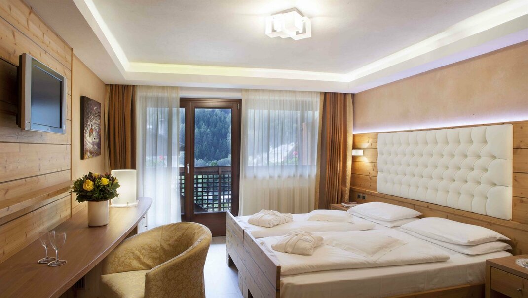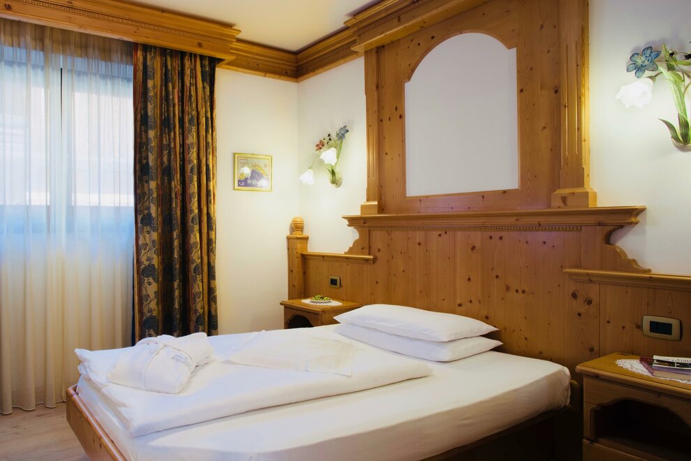 Simpatica e accogliente camera, arredata in legno trentino, con ampio letto alla francese per un maggiore comfort, tranquilla e silenziosa, senza balcone, dotata di grazioso bagno finestrato, kit wellness con borsa, telo e ciabattine. Ottima soluzione sia per un’occupazione singola, sia per una coppia che desidera risparmiare un po’. Ideale per chi ama la privacy, senza rinunciare al comfort e al relax.