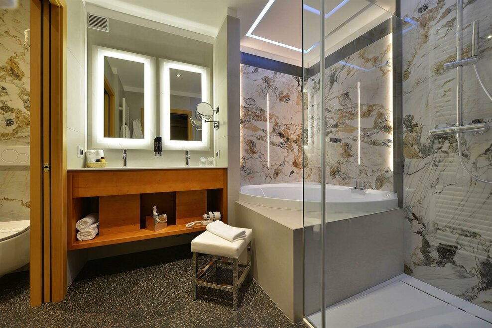balcone, prodotti bagno, idromassaggio, asciugacapelli, camera/app. non fumatori, soggiorno, riscaldamento, spazi separati, piumone, biancheria da bagno, telefono, camera/appartamento tranquillo, minibar, TV-Sat, asciugamani compresi, cabina infrarossi in camera/app., armadio, accappatoio, wi-fi gratis, scrivania, WiFi, arredamento moderno, appartamento senza moquette, servizio sveglia, cassetta sicurezza, bollitore acqua