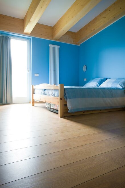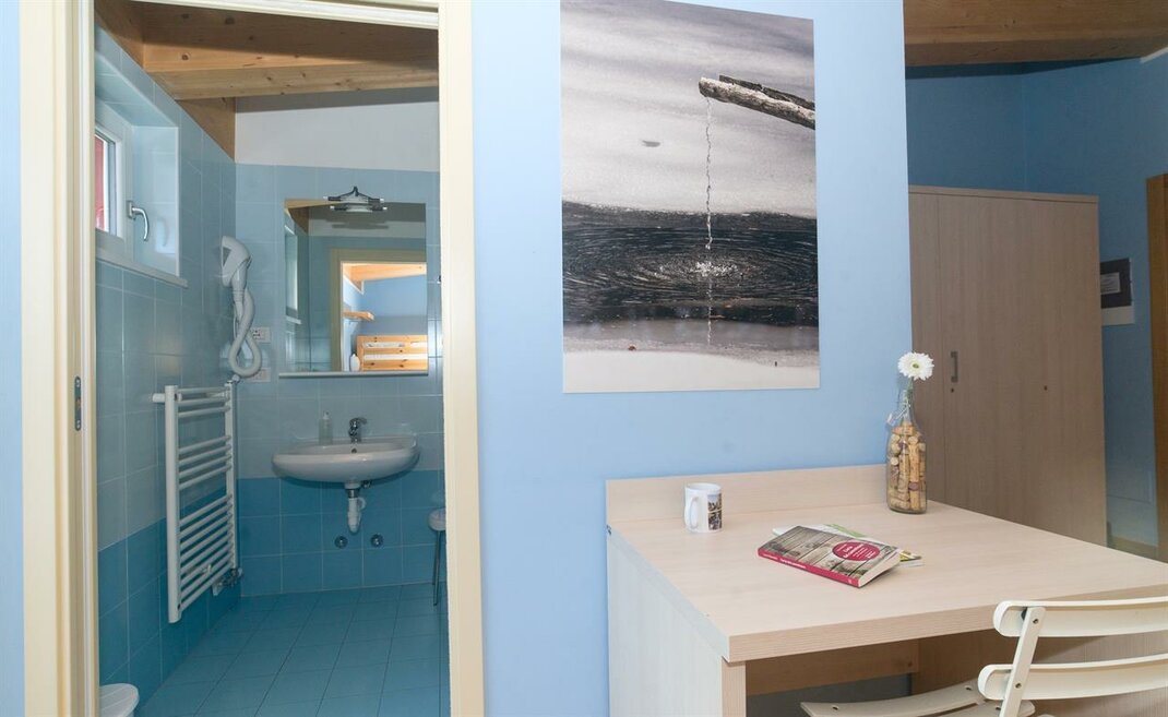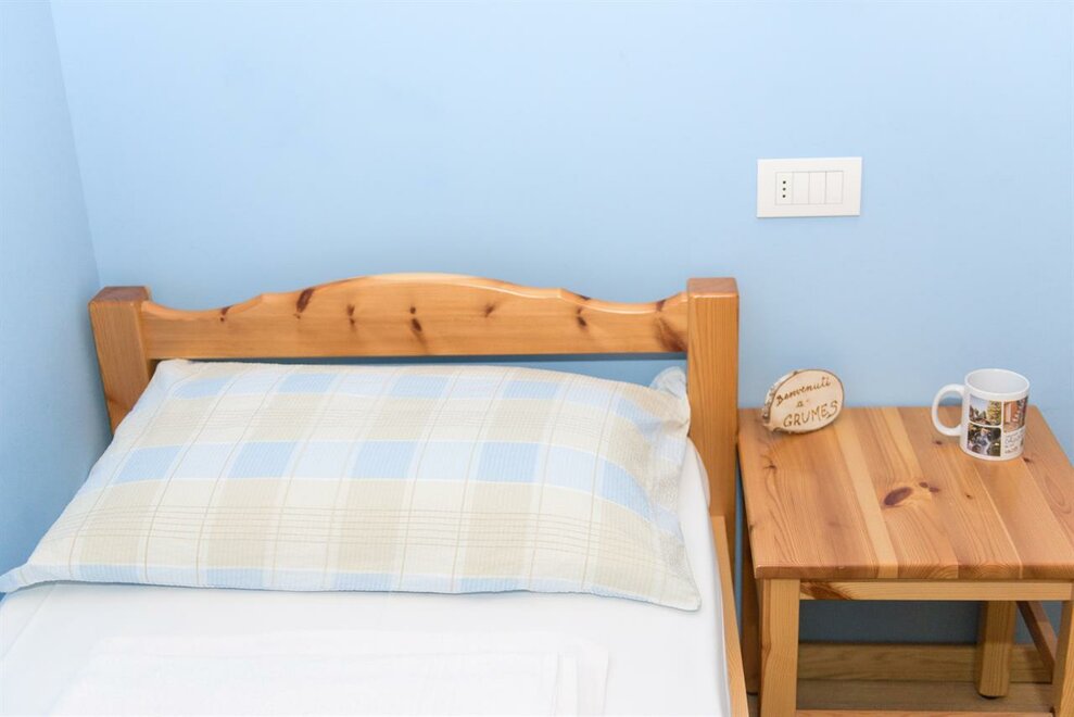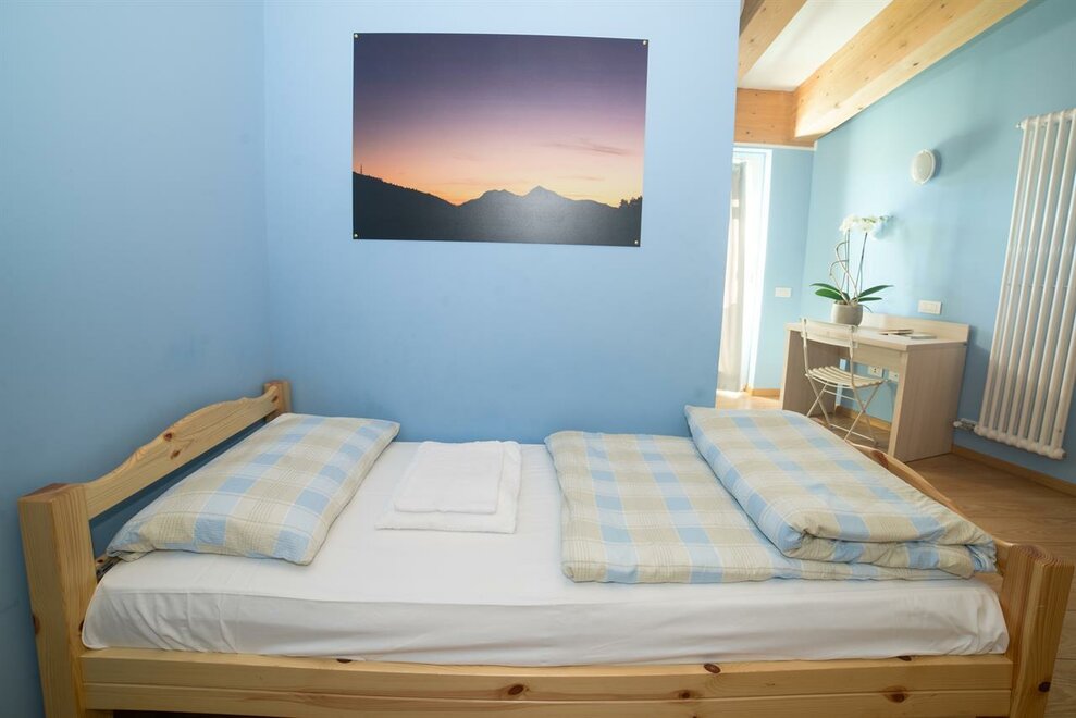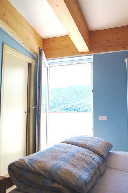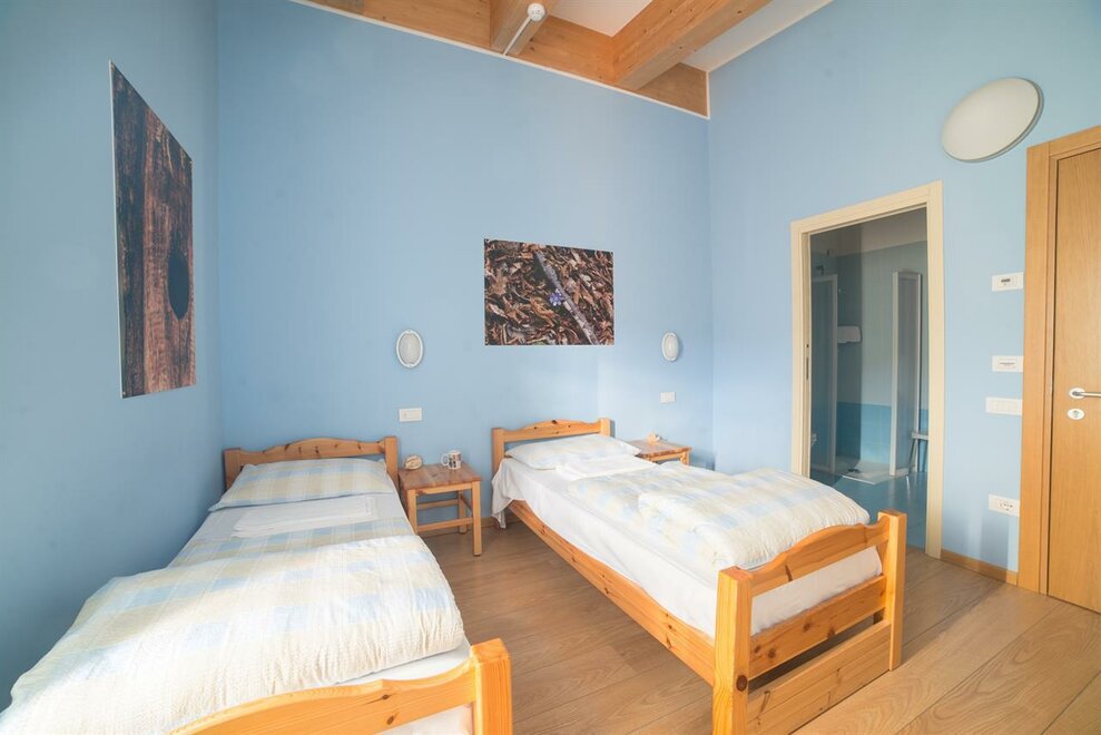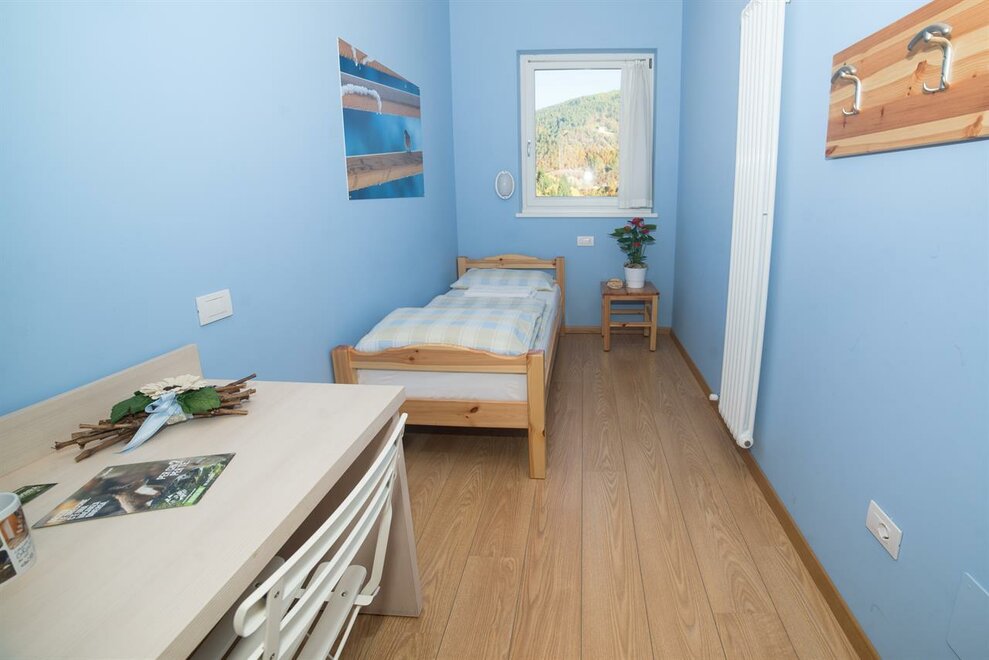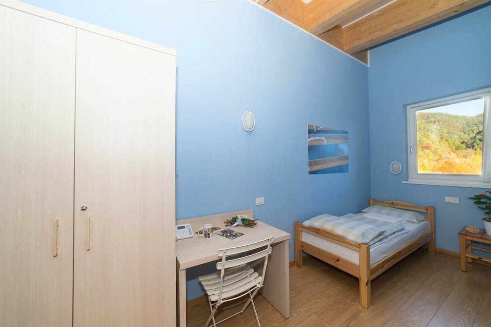 It is composed of a single bed and a bunk bed (plus a pull-out bed that can be added). A cozy and intimate room, with wooden furniture, private bathroom, balcony, free wi-fi.Stanza dell'ABETE - camera tripla.