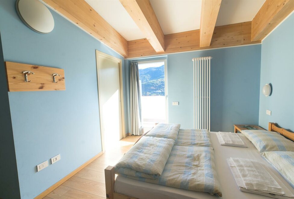 Quattro letti a castello, doppio bagno in camera, ampio terrazzo soleggiato con splendida vista sulla valle e sul Lagorai, internet wi-fi gratuito.dotazioni camere/appartamenti
