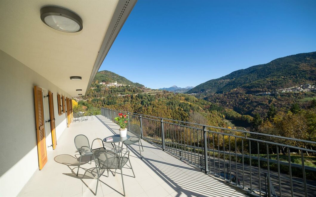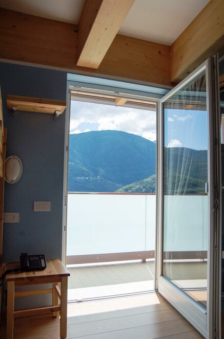 Bagno privato, terrazzino con splendida vista sulla valle e sul Lagorai, internet wi-fi gratuito.dotazioni camere/appartamenti