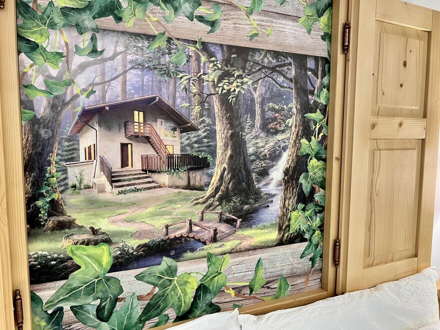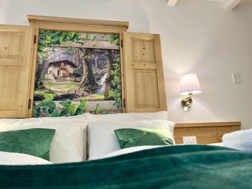 Questa camera è dedicata alla sempreverde pianta di edera che con le sue infinite sfumature di verde ama arrampicarsi sui muri del nostro giardino e sugli alberi del bosco che circonda la nostra valle.