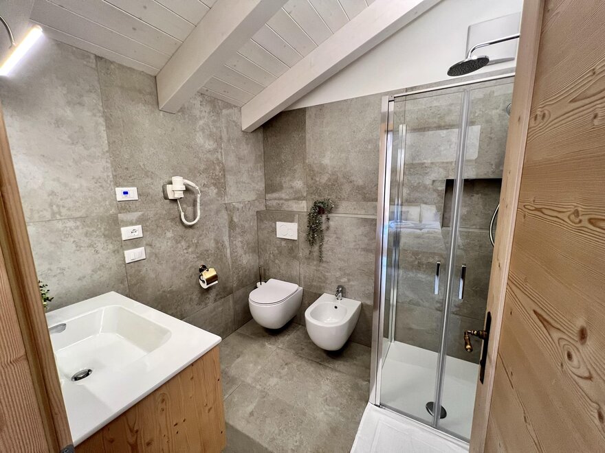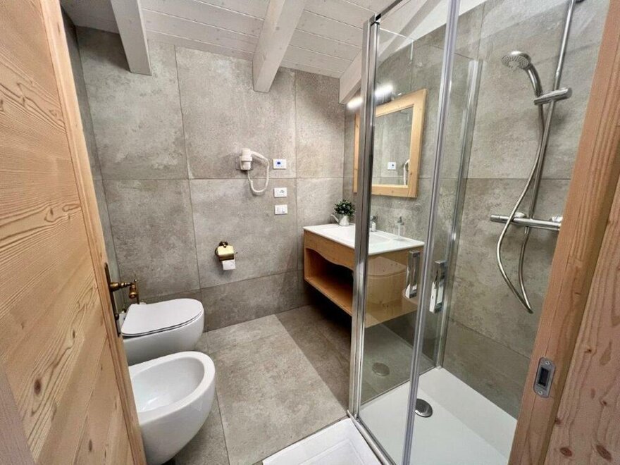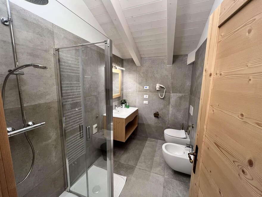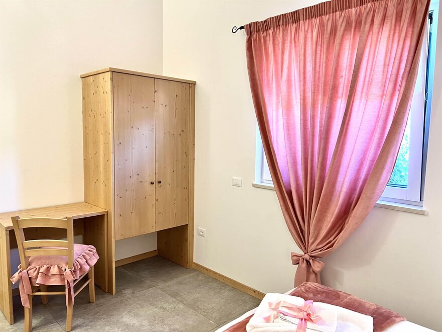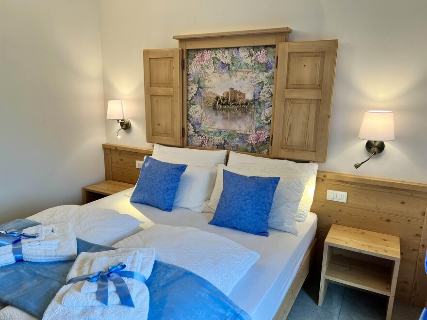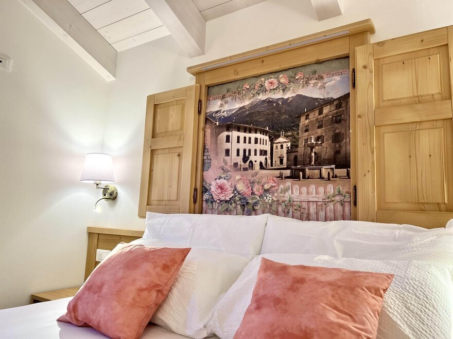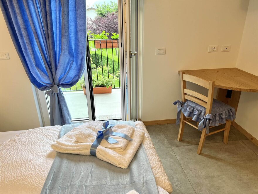 Dispone di un letto matrimoniale, bagno privato e di una terrazza da cui potrete ammirare i giardini del rione e la vista sulle Dolomiti di Brenta.dotazioni camere/appartamenti