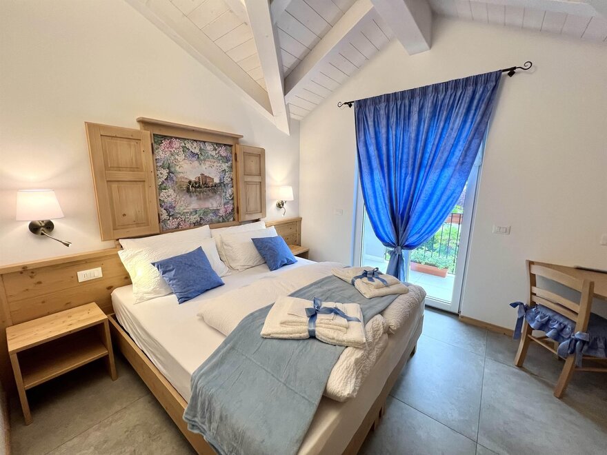 Questa camera abbiamo voluto dedicarla alla signorile e nobile eleganza della pianta d'ortensia che abita nel nostro giardino.