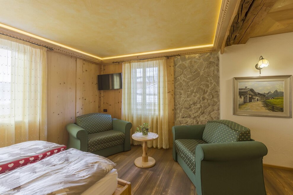 Ogni camera ha il suo fascino e la sua storia, sono una differente dall’altra con Stubi antiche del 1700, stufe in maiolica e affreschi originali che ricordano gli antichi splendori del periodo Asburgico. Camera Tripla da 20 a 22 mq: le nostre camere triple sono confortevoli e accoglienti, arredate in classico stile di montagna. Dotate di: bagno privato, TV, telefono, radio, WI-FI, minibar, cassetta di sicurezza, asciugacapelli, bollitori per il tea.
