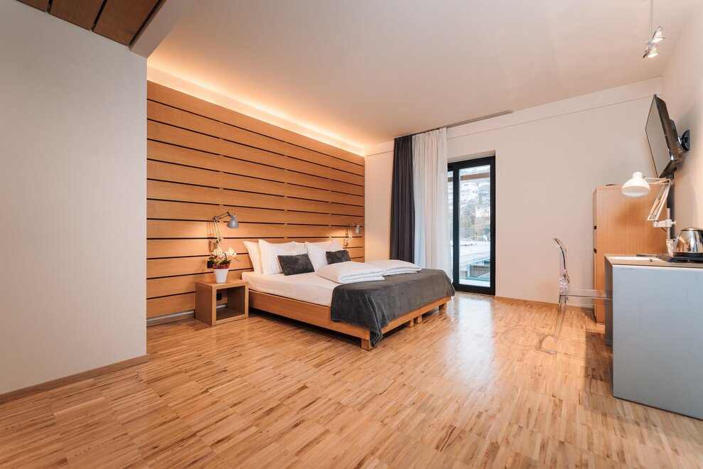 Camere di design tutte con parquet e balcone, dispongono di un letto matrimoniale, una poltrona letto o un letto aggiuntivo.