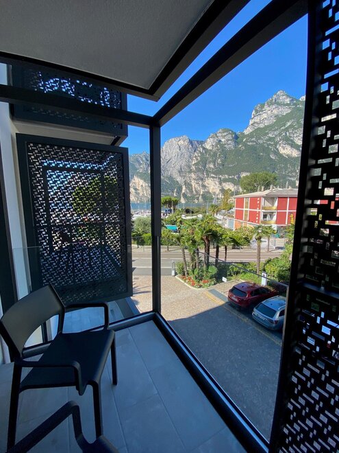 Eleganti camere dal design moderno, tutte con balcone con vista lago laterale per non perdervi nessuna alba o tramonto.