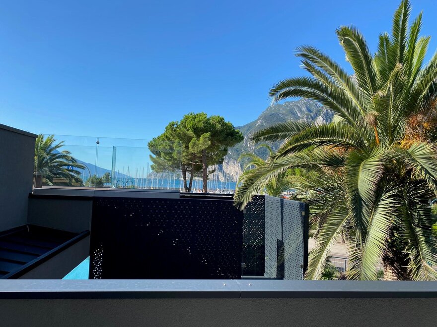 Pregustano un tuffo nel relax affacciandosi in balcone con vista parziale sul Lago.