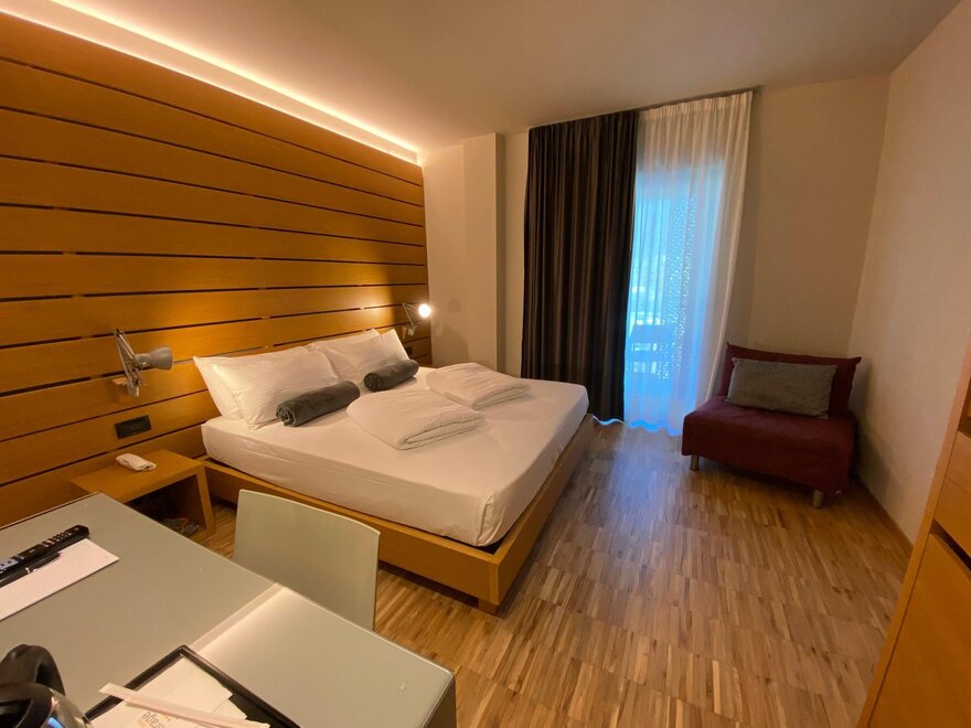 TV-Sat, scrivania, telefono, balcone, asciugamani compresi, armadio, riscaldamento, climatizzatore, minibar, cassetta sicurezza, asciugacapelli